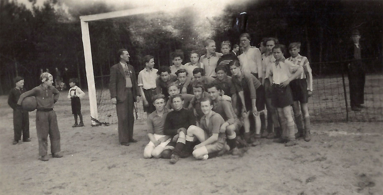 Hinter Leskens Haus ging es links zum Sportplatz. Auf den Fotos aus den 60er Jahren sind noch die Fußballtore zu erkennen.