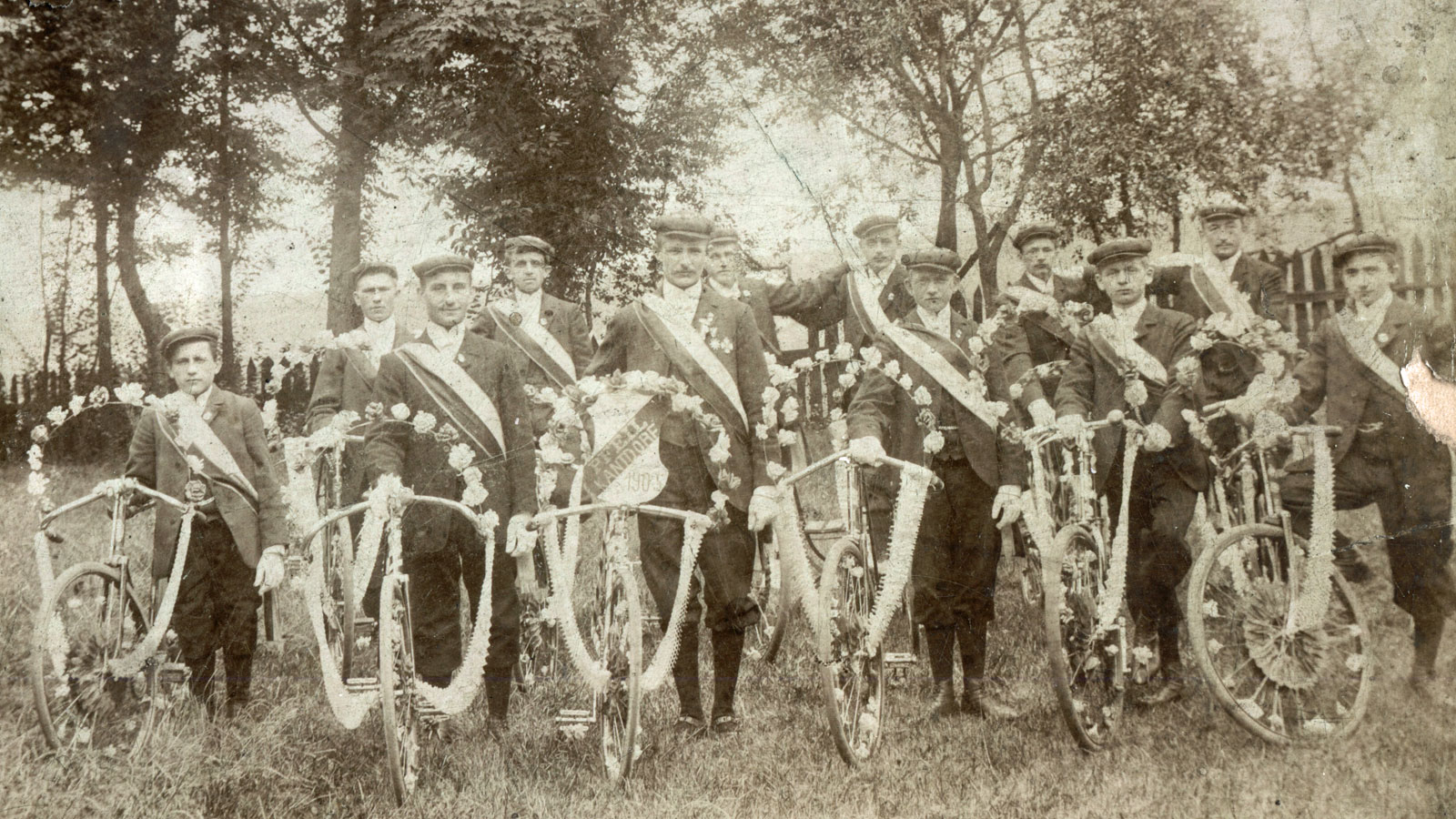 Das Foto der Cantdorfer Radfahrer von 1905 zeigt ein stolzes Herrenteam. Es wurde bei Frank Jannacks Oma auf dem Dachboden gefunden. Über die Personen ist nichts bekannt.